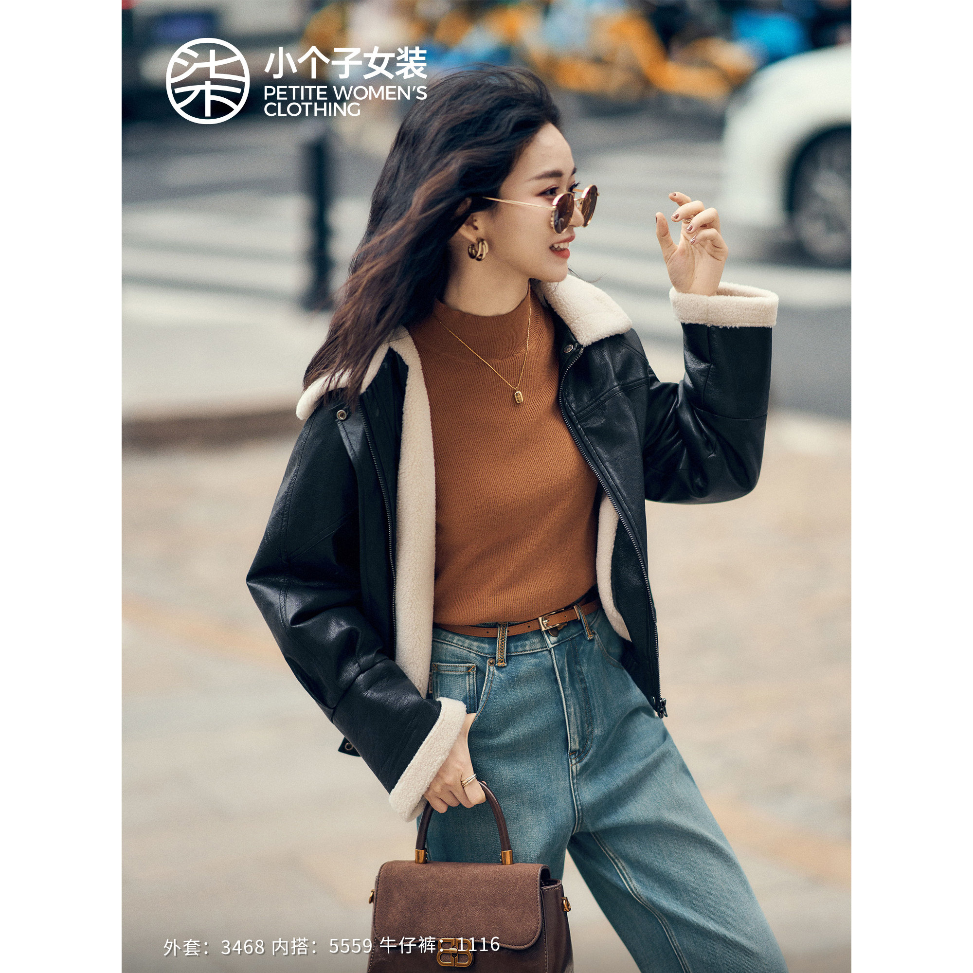 柒量一裁加绒黑色皮衣外套小个子巨好看的初冬外套女装冬3468