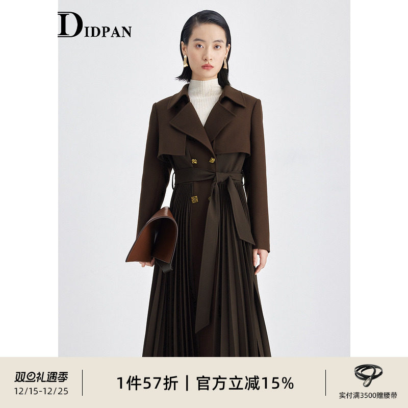IDPAN女装新款时尚职场气质拼接百褶显高显瘦风衣深秋初冬外套女