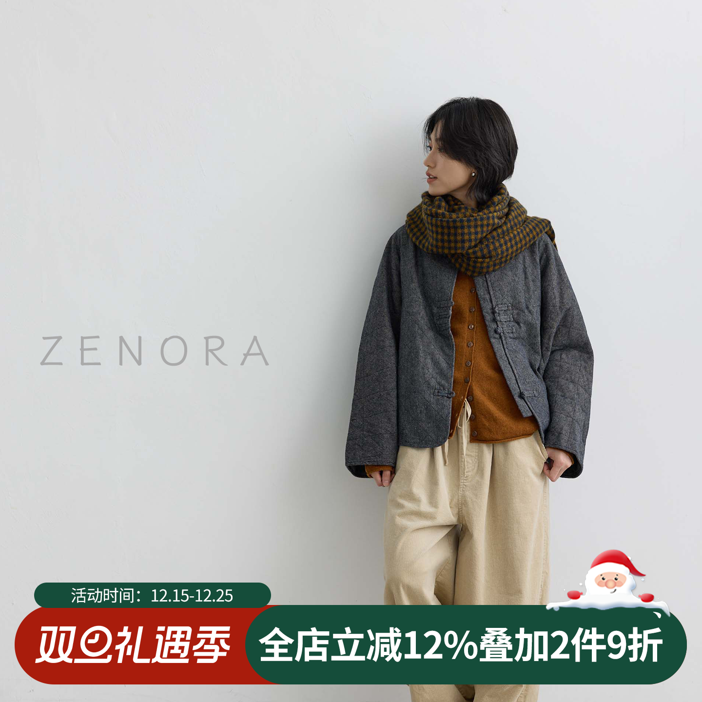拙外【恋花】夹棉初冬外套女亚麻棉服新款设计感独特好看保暖棉衣