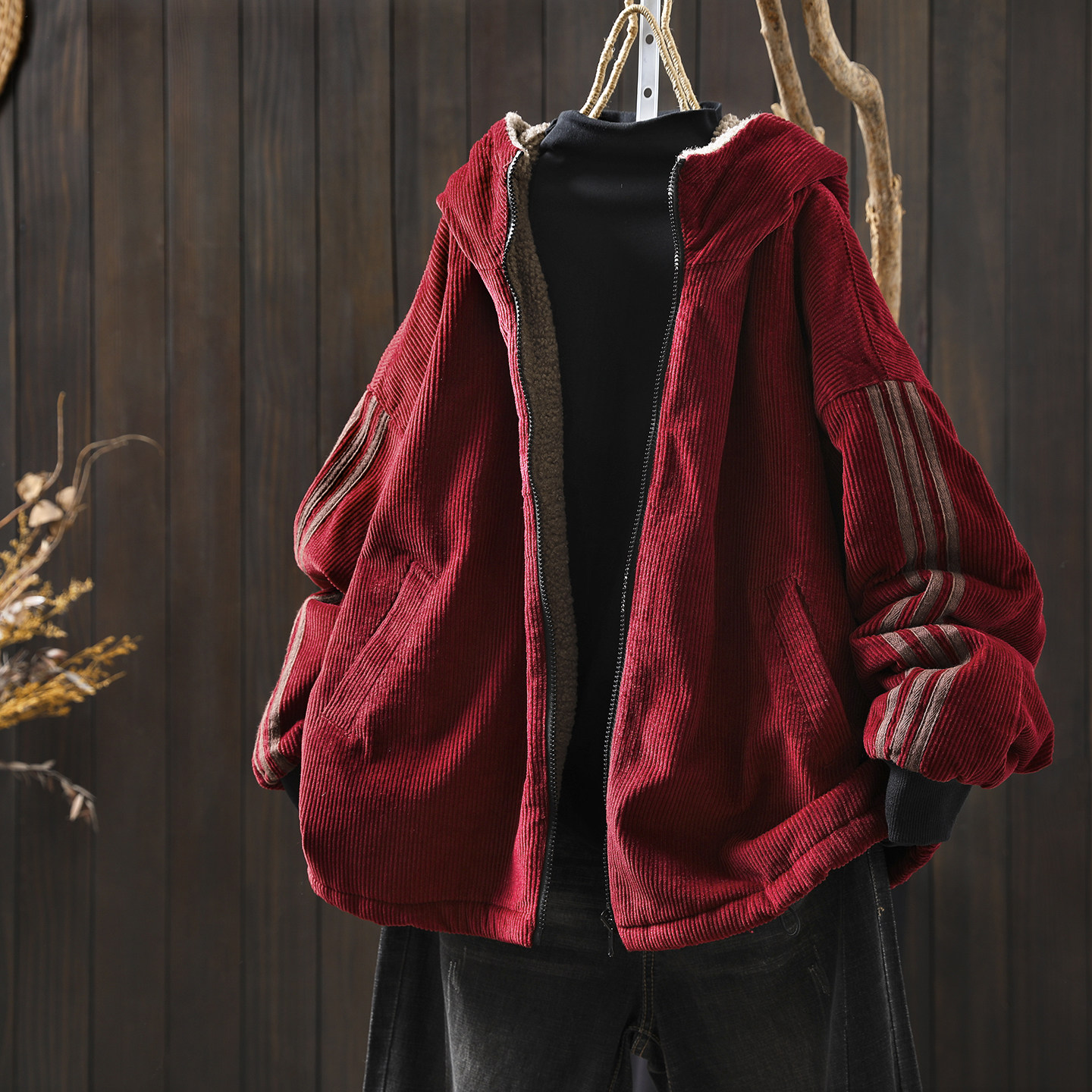 巨好看的初冬外套女2025新款灯芯绒连帽加绒胖mm宽松有质感厚上衣