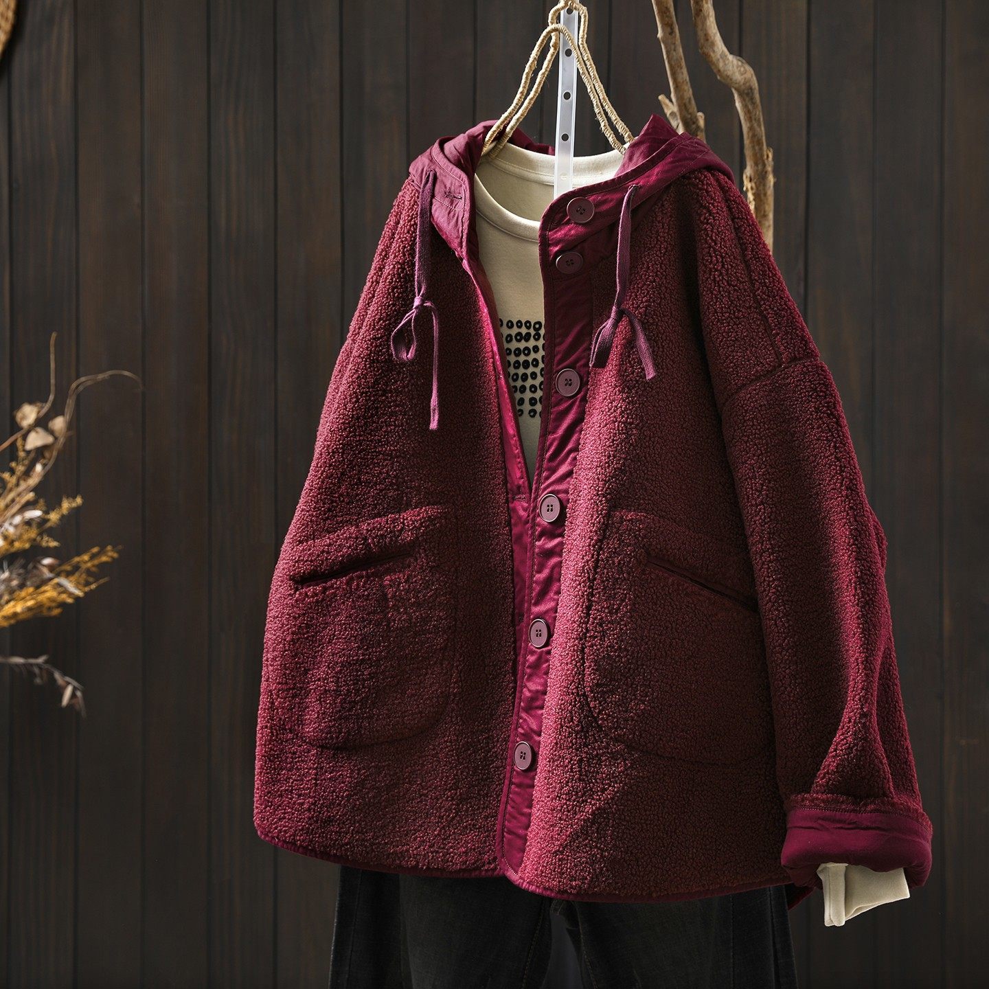 vintage大码宽松初冬外套加绒加厚开衫连帽卫衣女ins正肩显瘦上衣