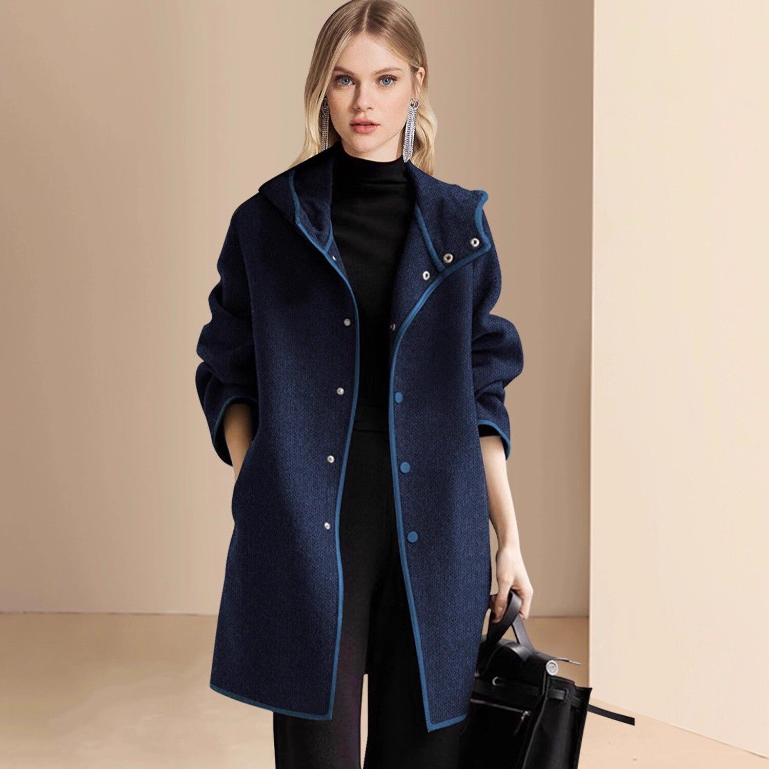Amii【含绵羊毛】25秋冬韩系休闲减龄袖口撞色毛呢外套女初冬外套