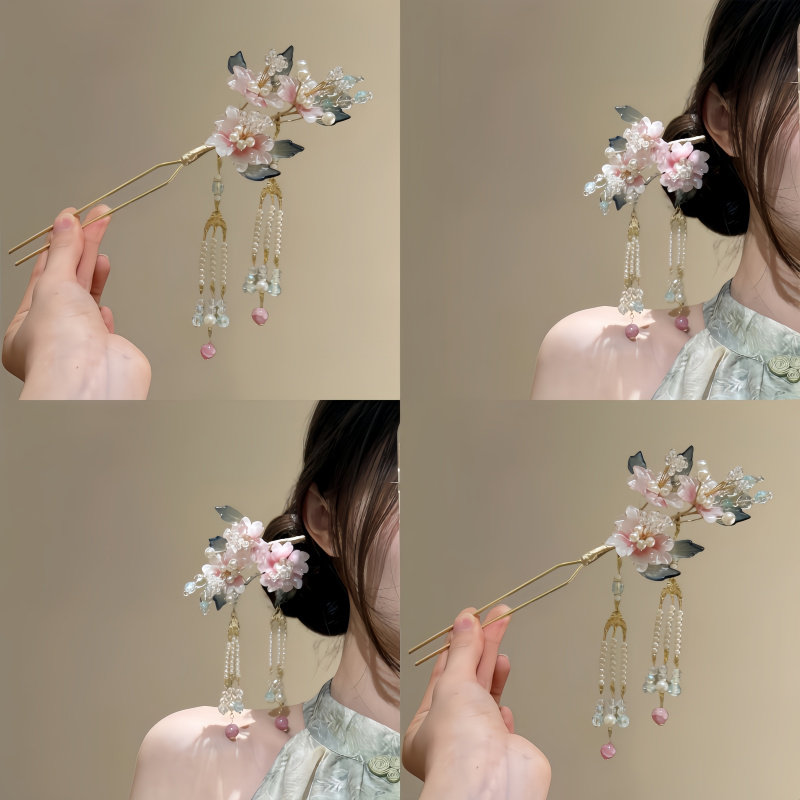 繁瑾迷情~新中式簪花绢花花朵发钗流苏发簪子古典头饰汉服头饰品