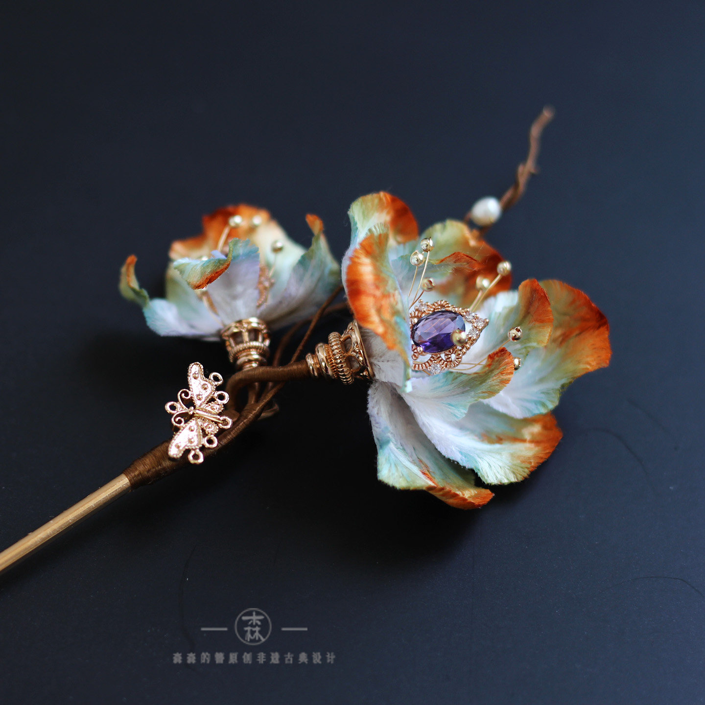 森森的簪丨敦煌风 原创非遗绒花盘发簪子 礼物发饰新中式国风古风