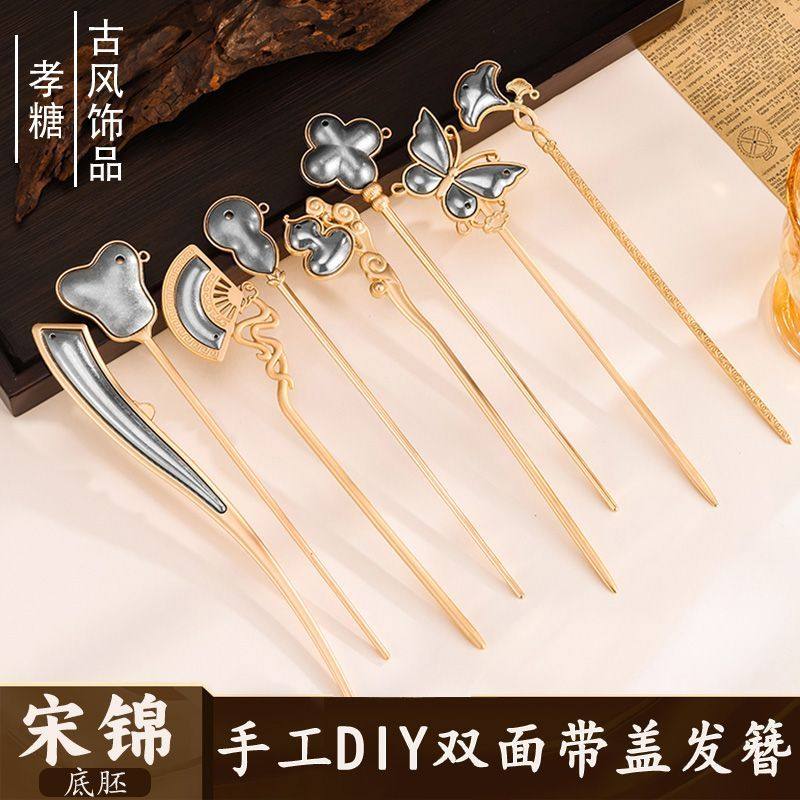 宋锦diy底托发簪气质盘发簪子新中式古典复古头饰宋锦刺绣底胚