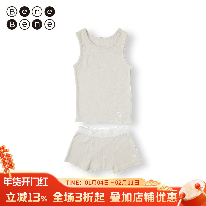 benebene纯棉内衣套装男童四季新亲肤背心四角内裤两件套舒适柔软