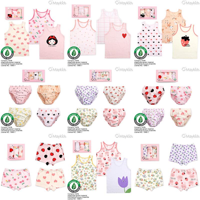 韩国may kids有机纯棉夏季新可爱女孩儿童背心三平角内裤内衣套装