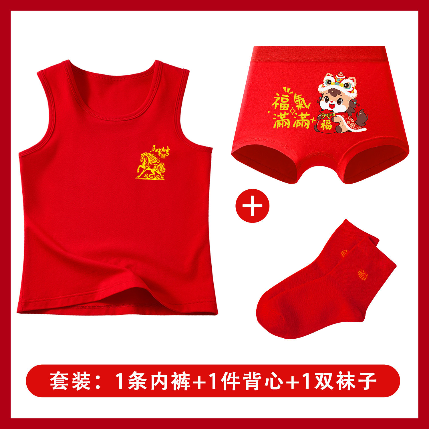 男童红色背心纯棉本命年儿童内衣内裤袜子套装男孩青少年属马12岁
