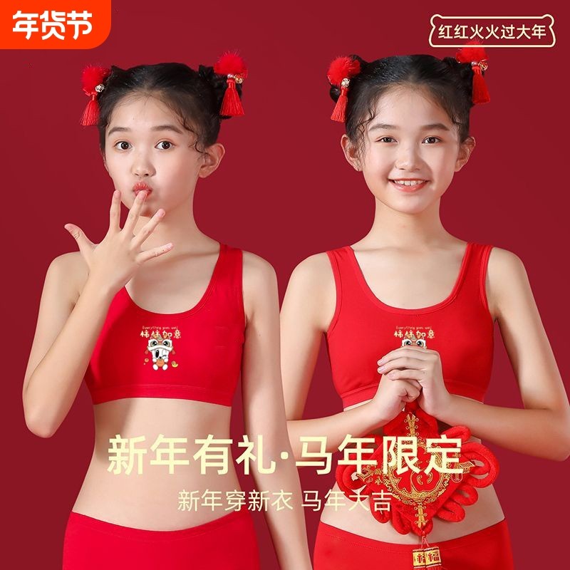 本命年大红色女童背心文胸套装12岁马年儿童发育期13纯棉内衣内裤
