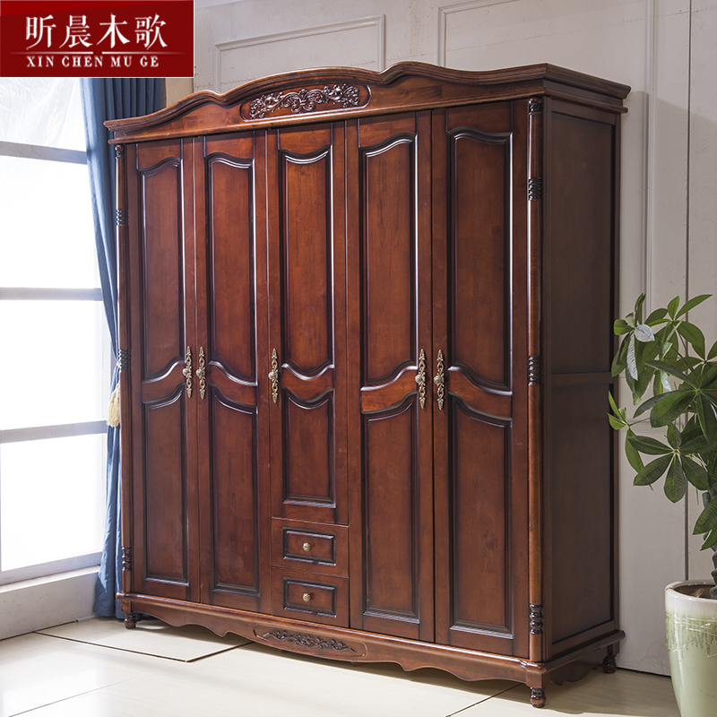 实木衣柜家用卧室储物柜4门美式双开柜简约收纳柜整体5门组合衣橱