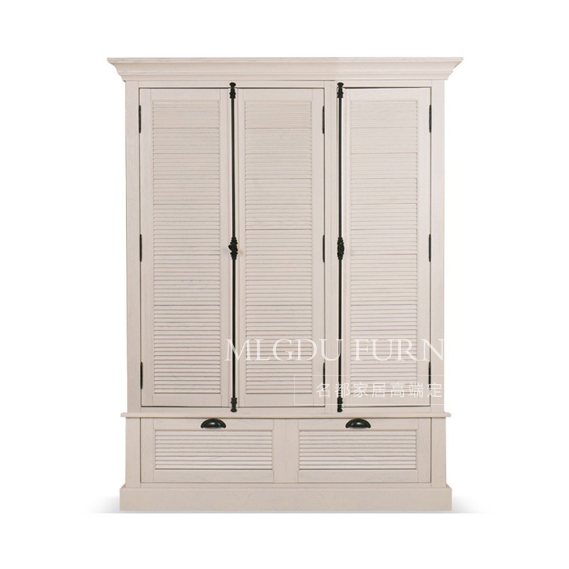 美式实木衣柜 复古橡木三门四门百叶门天地锁大衣柜橱柜酒柜定制
