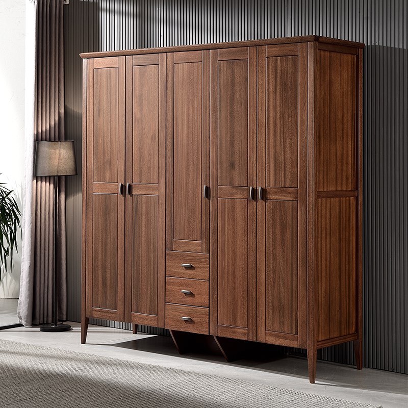 黑胡桃木全实木拉门衣柜意式极简卧室5门J4门现代新中式原木大衣