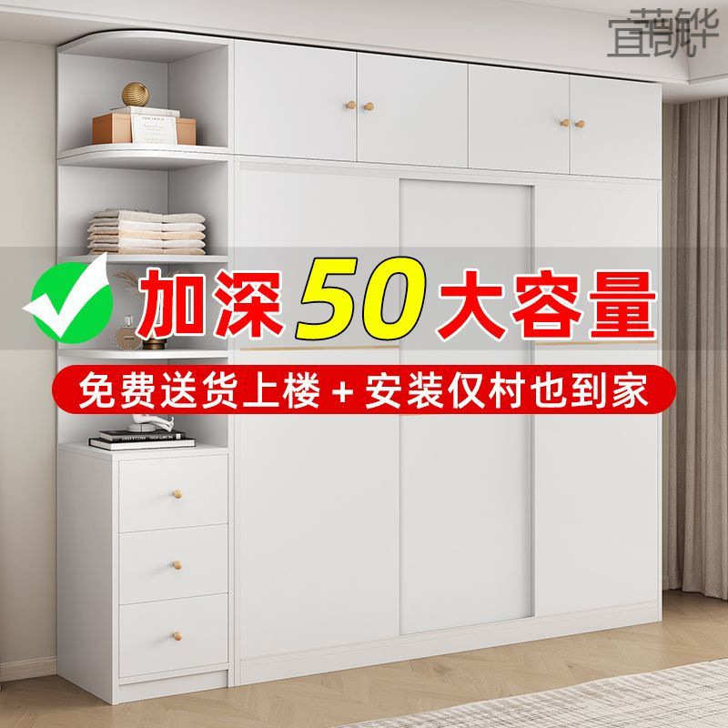 QP5衣柜家用卧室实木推拉门简约现代小户型柜子出租房儿童衣橱包