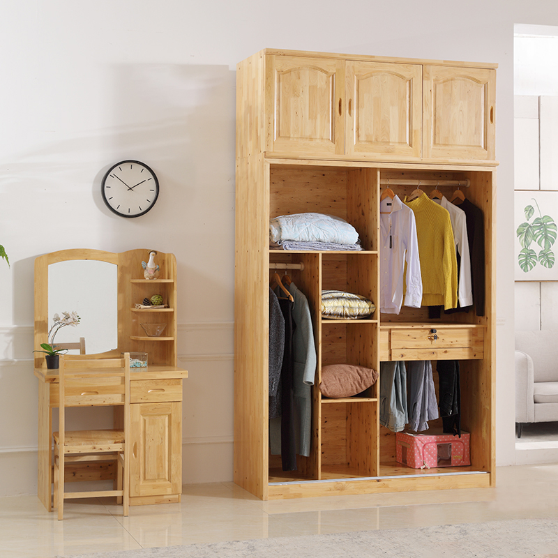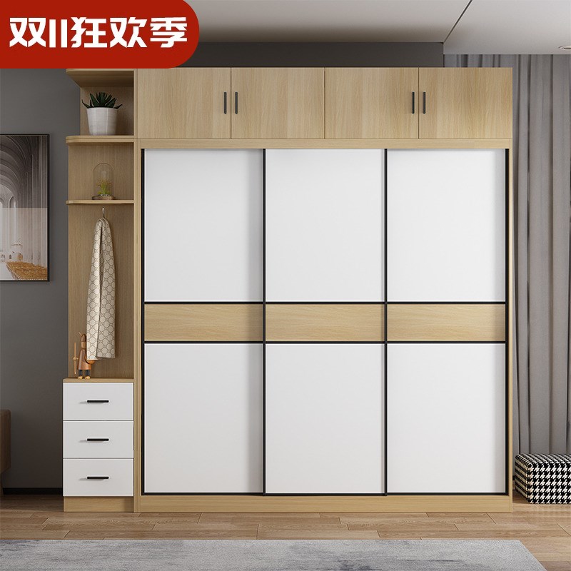 衣柜简约现代实木家用定制卧室经济型大衣柜推拉门移门原木风衣橱