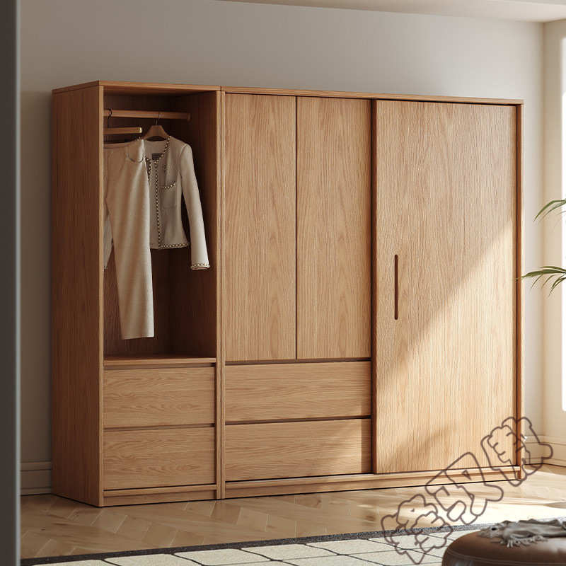 锋p5全实木橡木推拉门衣柜家用卧室原木风现代简约衣橱趟门主卧室