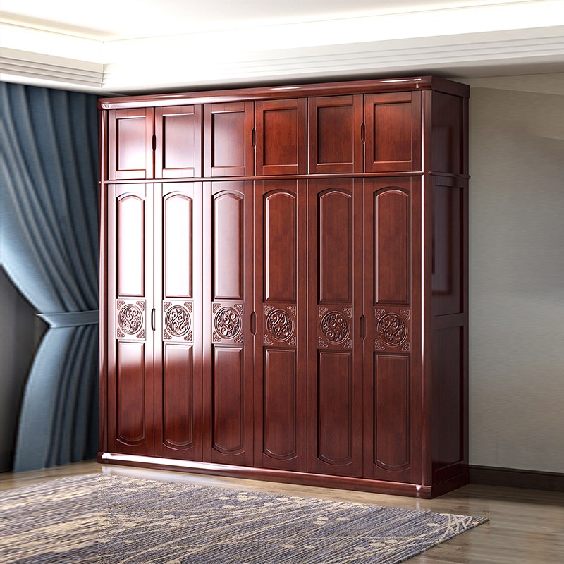 实木衣柜中式原木家用卧室大衣橱柜现代简约3四5六门转角雕花柜子