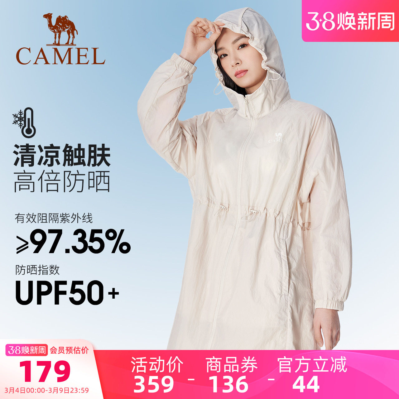骆驼冷白皮户外防晒衣女中长款2026夏季防紫外线收腰皮肤衣防晒服
