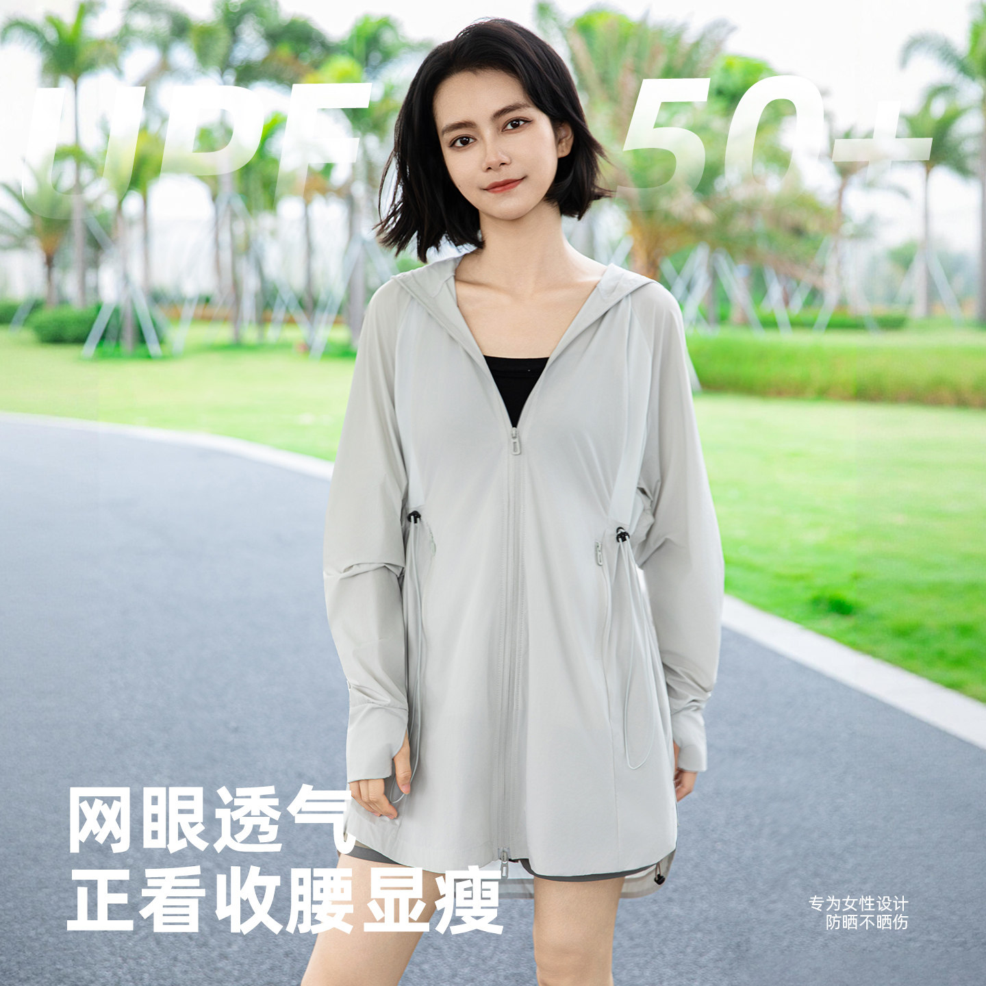 拓路者中长款户外防晒衣女生upf50+防紫外线皮肤衣收腰透气防晒服