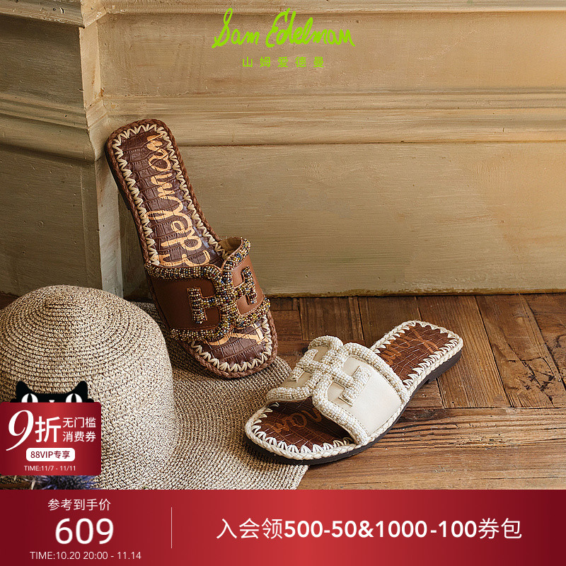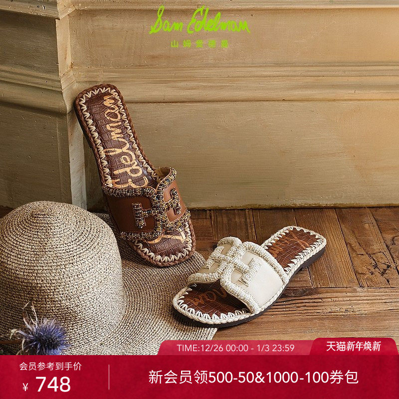 SAM EDELMAN山姆爱德曼2025夏串珠一字拖外穿白沙滩拖鞋女FITZ