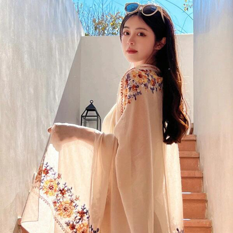 民族风旅游披肩女防晒丝巾2026新款旅游拍照海边沙滩纱巾薄款外搭