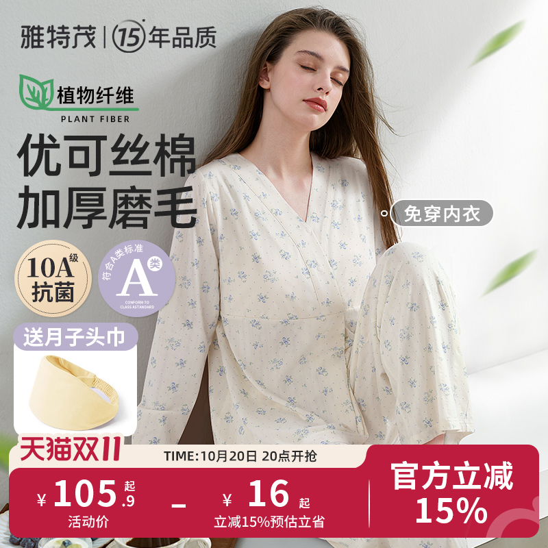 雅特茂月子服纯秋冬产后棉孕妇睡衣产妇喂奶哺乳衣孕期秋衣家居服