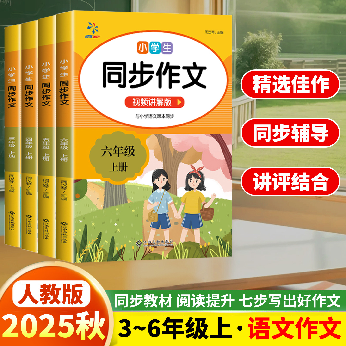 2025秋小学生同步作文三四五六年级上册同步人教版教材超级思维名师视频讲解阅读提升精选辅导讲评结合素材积累学习仿写满分作文书