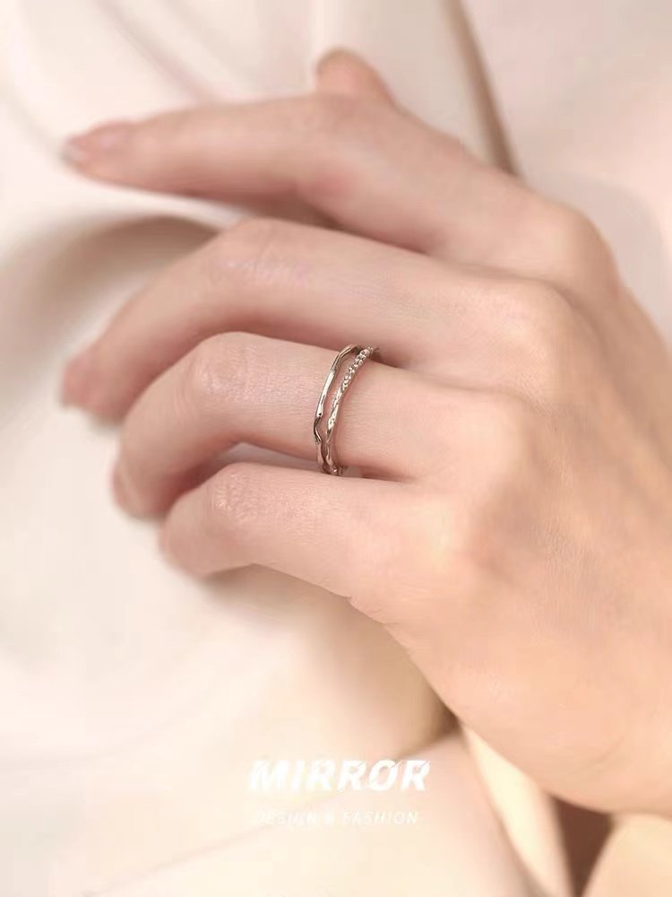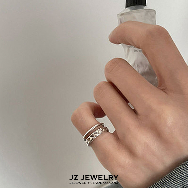 JZ S925纯银欧美简约指环 韩国冷淡风气质高级感开口双层尾戒指女