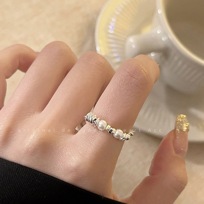 不规则碎银子珍珠戒指女韩国独特设计感食指戒时尚气质高级感尾戒