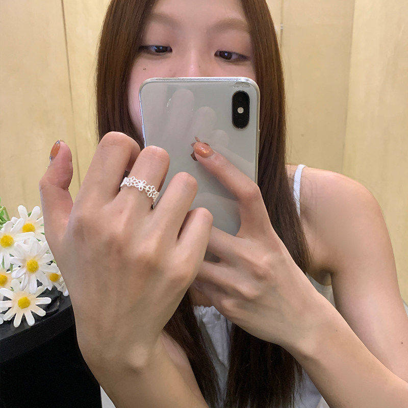 925纯银莲花朵戒指环 女开口韩国版潮人戒子个性简约荷花学生尾戒