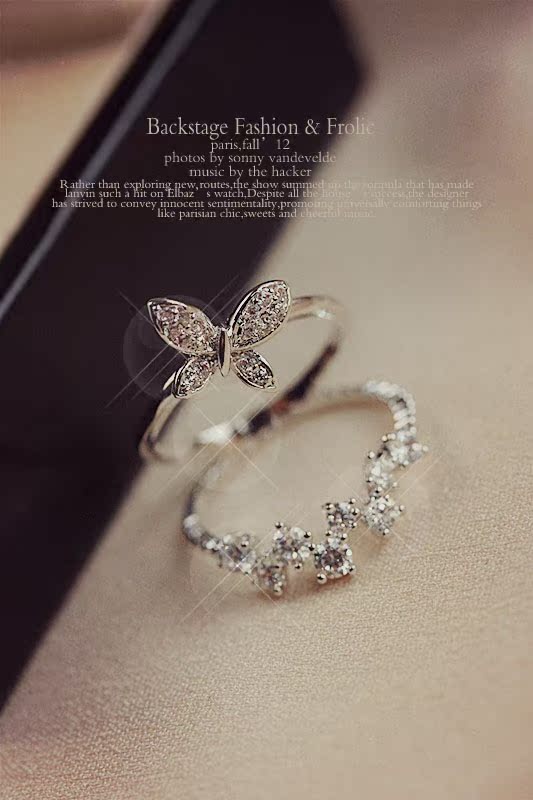 联合格韩国双层微镶蝴蝶气质戒指女指环配饰尾戒饰品首饰日韩潮人