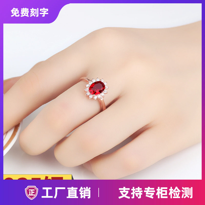 日韩国925纯银戒指女合成红宝石食指指环开口活口玫瑰金尾戒简约