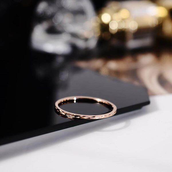 日韩版简约大方长城纹路钛钢镀18K玫瑰金食指戒指女尾戒韩国个性