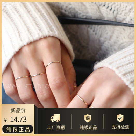 s925纯银关节戒指女学生极简约细尾戒日韩国网红个性潮人食指指环