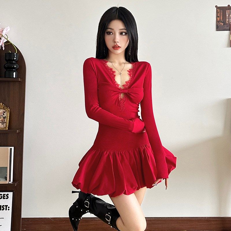- 蕾丝毛衣连衣裙