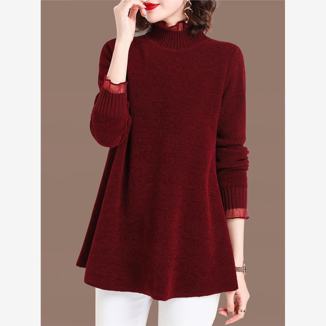 半高领毛衣群女秋冬中长款A字裙打底衫宽松大码女装妈中老年连衣