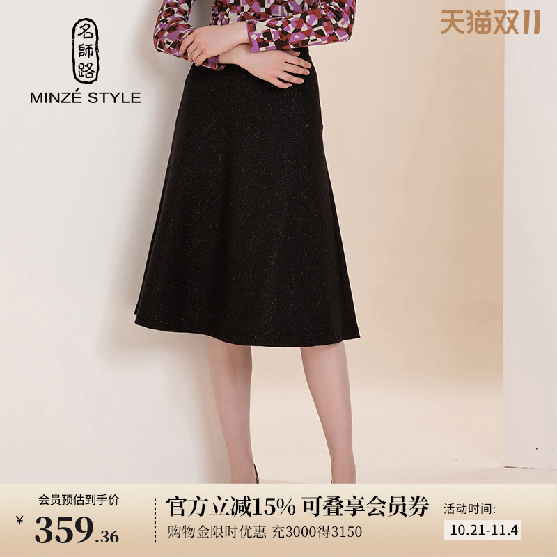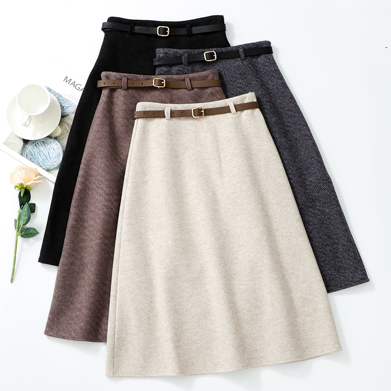 名师路羊毛呢a字半身裙女冬季新款中长裙通勤显瘦优雅知性配毛衣