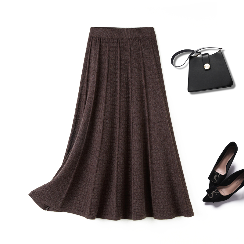 春秋冬针织半身裙女新款秋冬伞裙中长款加厚妈妈装半身长裙a字裙