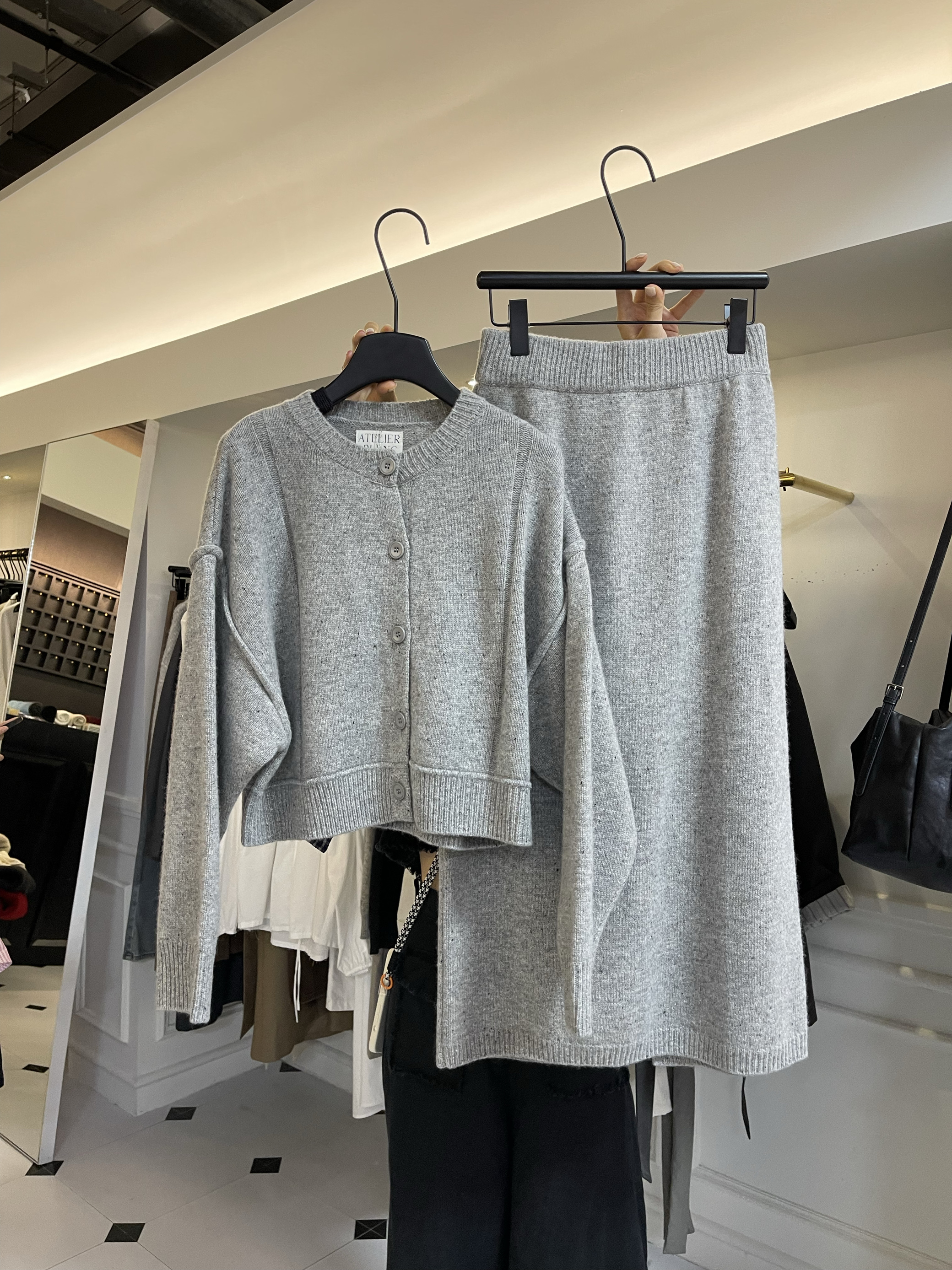 韩代毛衣套装女慵懒风气质针织开衫女+中长款A字半身裙两件套秋冬