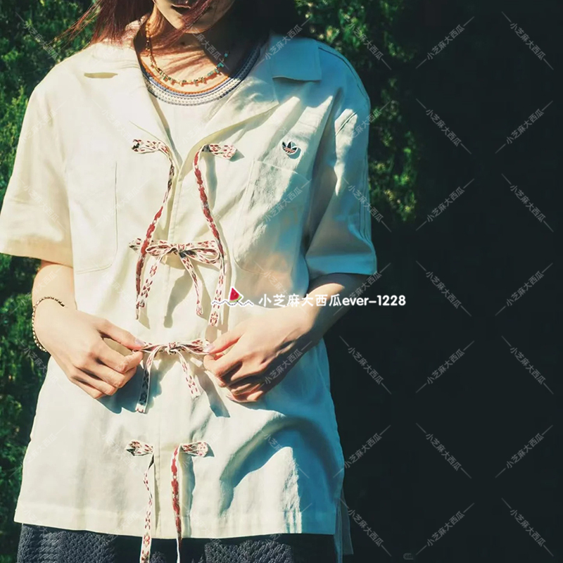 adidas三叶草CLOT陈冠希联名男女藏族色彩印花系带短袖衬衫JP1599