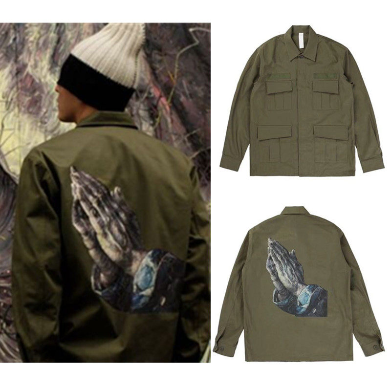 长袖翻领夹克男陈冠希同款潮牌帅气休闲文艺范印祷告的手溥款衬衫