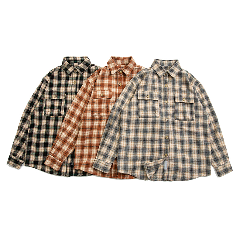 美式复古格子衬衫秋冬阿美咔叽三色入男女长袖衬衣夹克陈冠希潮牌