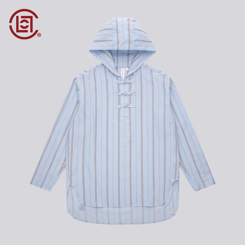 陈冠希 K洛特 C标 拼接条纹 中国风盘扣 情侣潮流衬衫 长袖衬衣