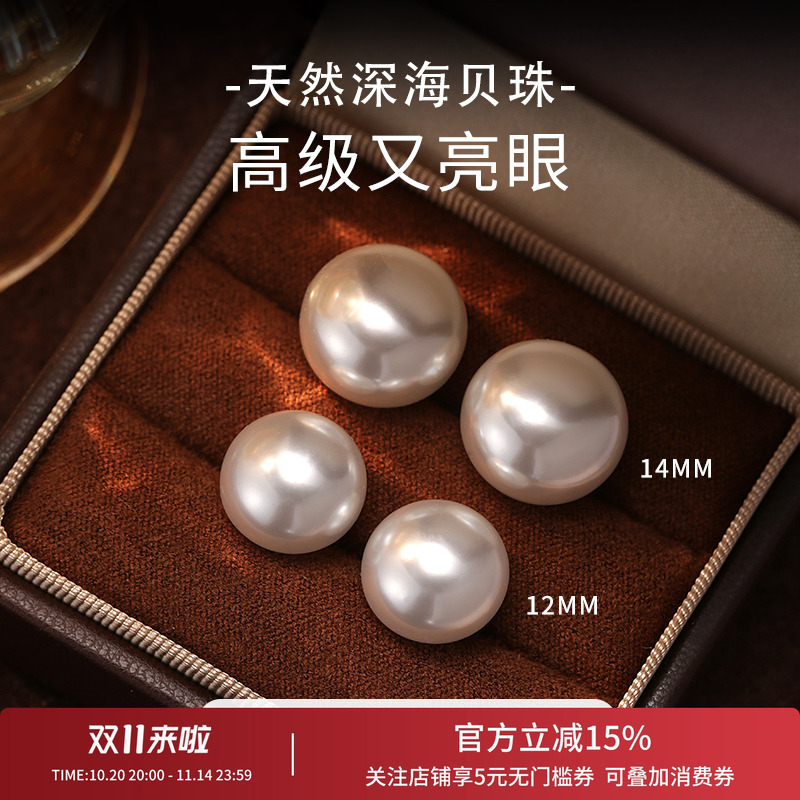 深海母贝珍珠耳钉999纯银耳钉2025新款爆款高级珍珠耳环耳饰耳夹