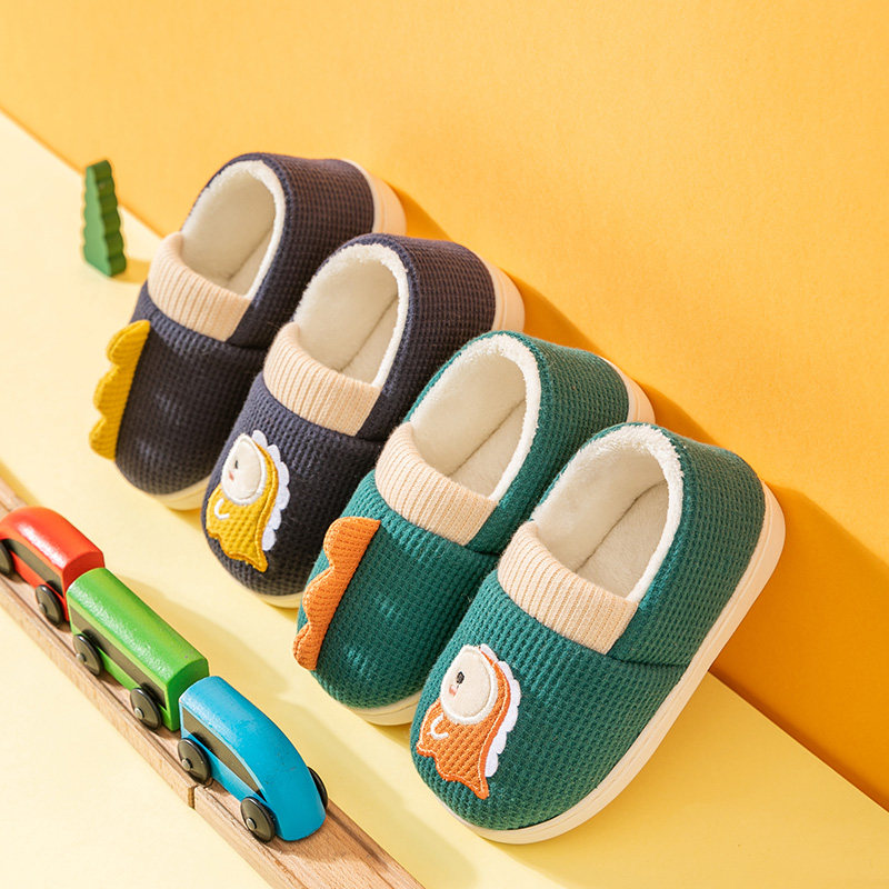 儿童包跟棉拖鞋男童冬季卡通可爱恐龙防滑保暖男孩宝宝室内家居鞋