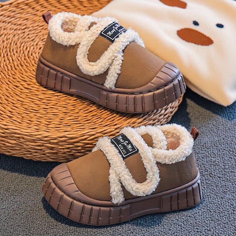 PU皮面防水儿童包跟棉拖鞋秋冬男女孩中大童宝宝室内亲子防滑棉鞋