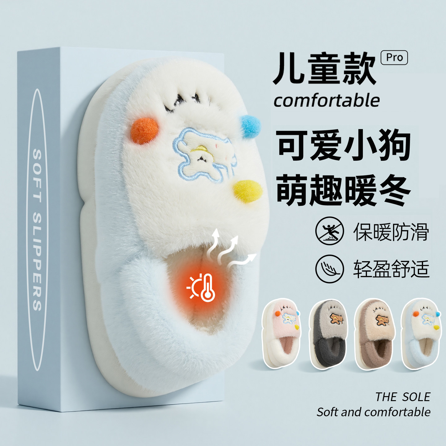 三丽鸥儿童包跟棉拖鞋冬季女童宝宝小孩家居室内防滑毛绒保暖亲子