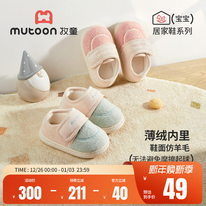 牧童宝宝拖鞋室内男童薄绒2025秋冬新款面包鞋儿童包跟棉拖鞋女童