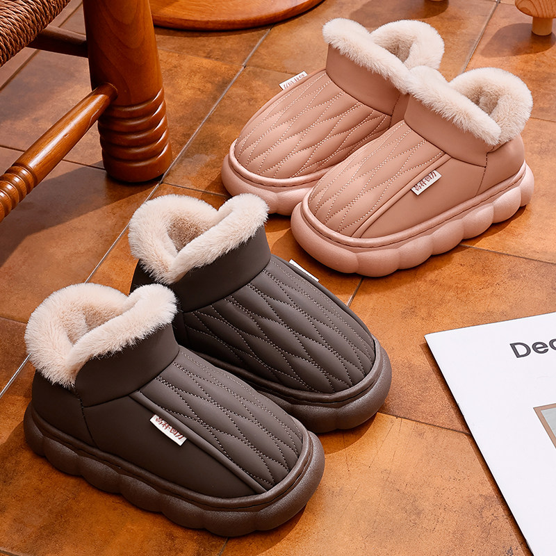 卡皮巴拉儿童包跟棉拖鞋秋冬季防水皮面保暖防滑女孩室内男童棉拖