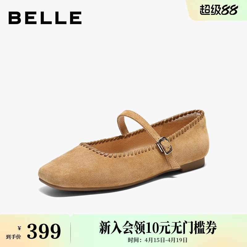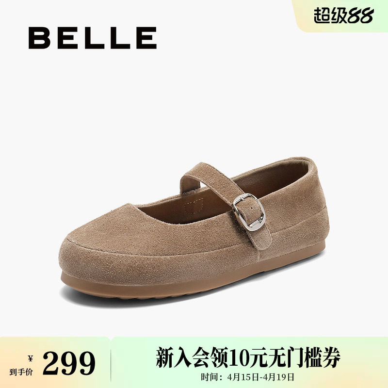 百丽复古羊绒面玛丽珍鞋女2026春季新款平底浅口单鞋子B3003AQ6