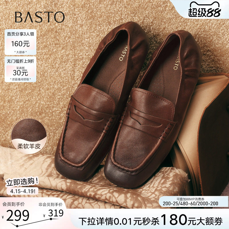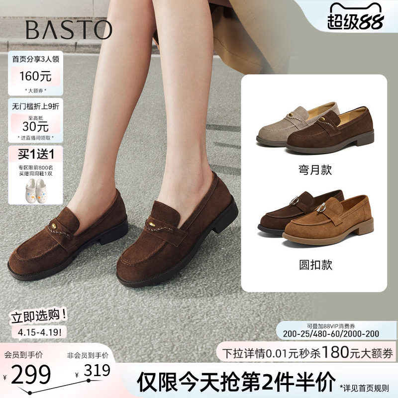 百思图2026春季新款英伦绒面超软羊皮乐福鞋小皮鞋女单鞋O2839AA6